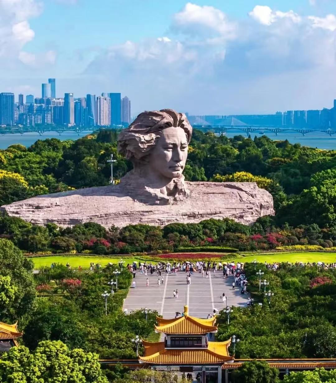 ■早餐后乘车赴AAAAA级“中国第一洲”-【橘子洲】(步行游览,景区有配备环保车自愿自费往返40/人),由南至北,横贯江心,西望岳麓山,东临长沙城,四面环水,绵延十多里,狭处横约40米,宽处横约140米,形状是一个长岛。有毛泽东青年艺术雕塑、问天台等景点。橘子洲久负盛名,春来,明光潋滟,沙鸥点点;秋至,柚黄橘红,清香一片;深冬,凌寒剪冰,江风戏雪,是潇湘八景之一“江天暮雪”的所在地。民国十四年(1925年),毛泽东同志从广州回到湖南领导农民运动,寒秋时节,重游橘子洲,写下了《沁园春·长沙》。