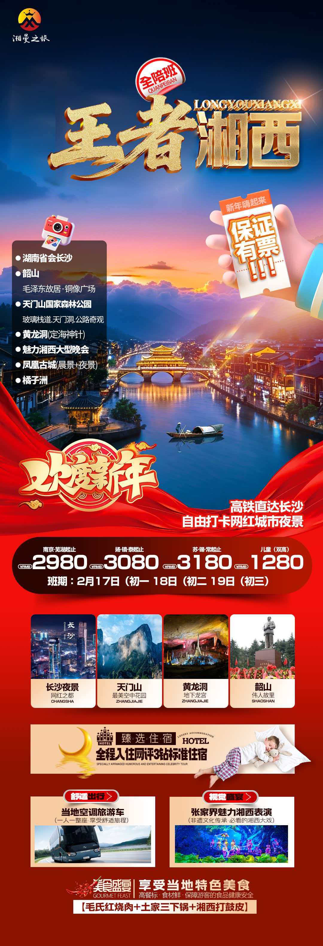 【王者湘西】长沙+橘子洲+韶山+黄龙洞+魅力湘西+天门山+凤凰古城双高五日游